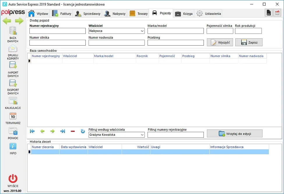 prosty program dla warsztatów samochodowych i firm transportowych.